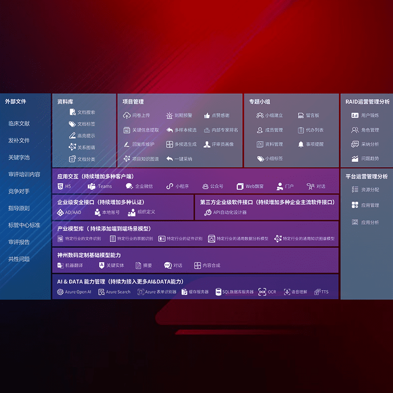 医疗器械产品上市前,,,要熟悉严格与繁复评审标准,,整理分析监管机构指导文件中的海量信息。。。。企业急需一个智能化解决方案,,,,提升知识管理效率,,,,提高评审通过率,,,以提升其市场竞争力。。